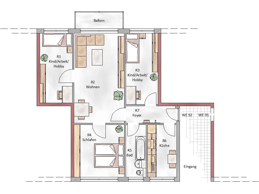 • Ruhige Lage: Genießen Sie die Ruhe unserer Wohnanlage. Das Quartier bietet Ihnen die perfekte Balance zwischen Erholung und Erreichbarkeit aller wichtigen Einrichtungen.